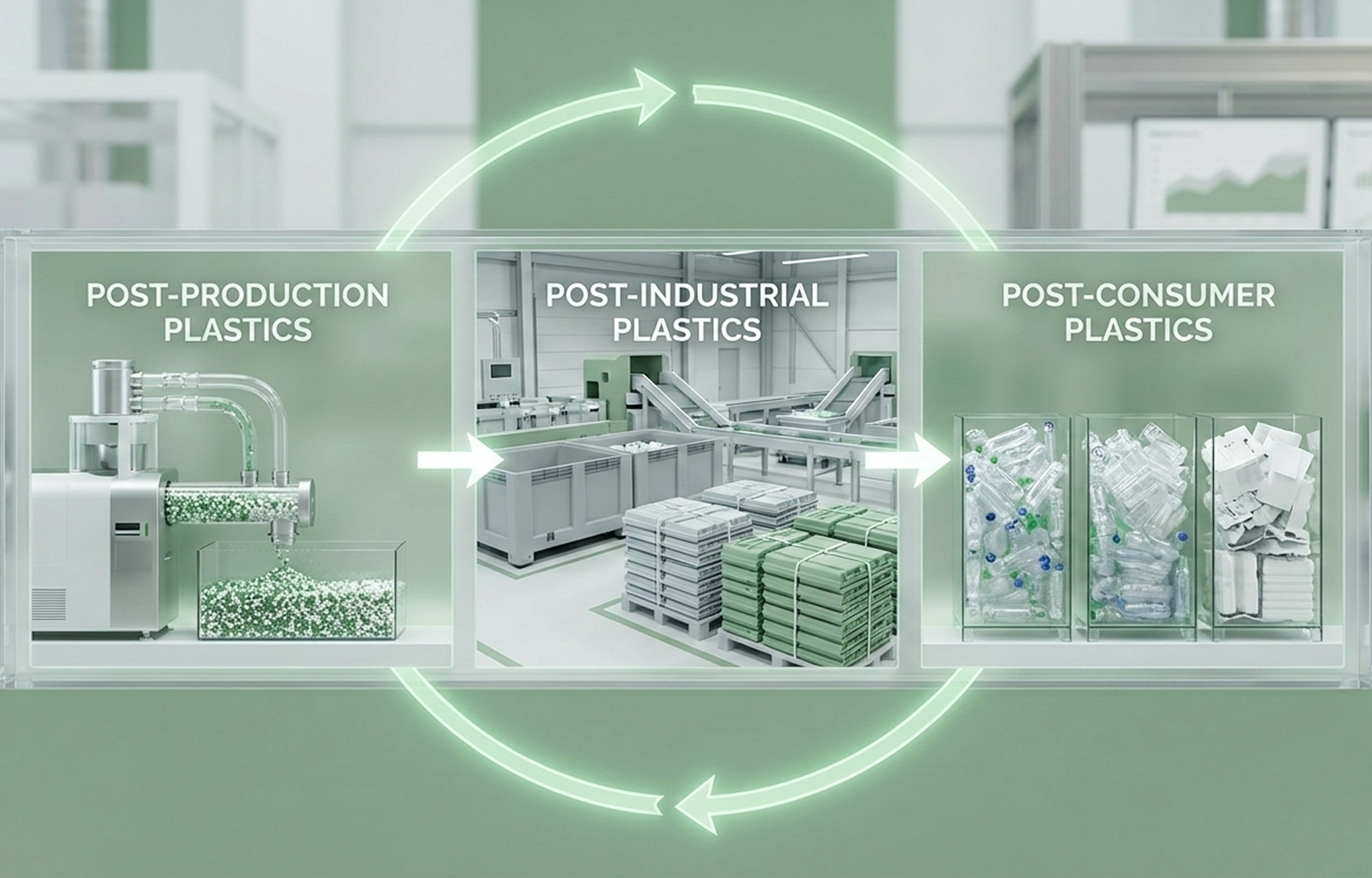 - Post-Production Plastics : Recovering and reprocessing manufacturing scrap to reduce waste.